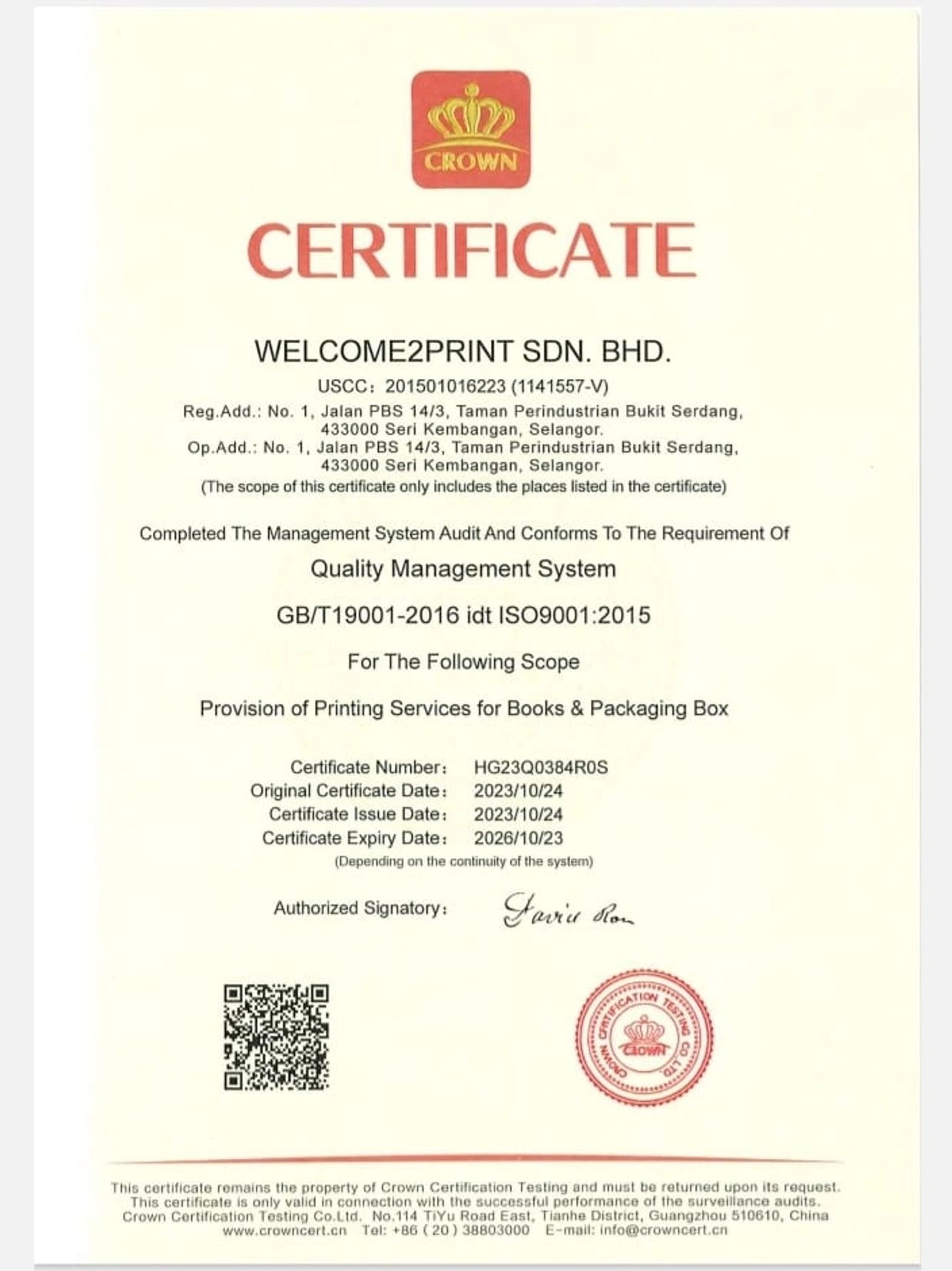 Let Welcome2Print Sdn Bhd be your trusted partner for reliable, quality-assured printing solutions.